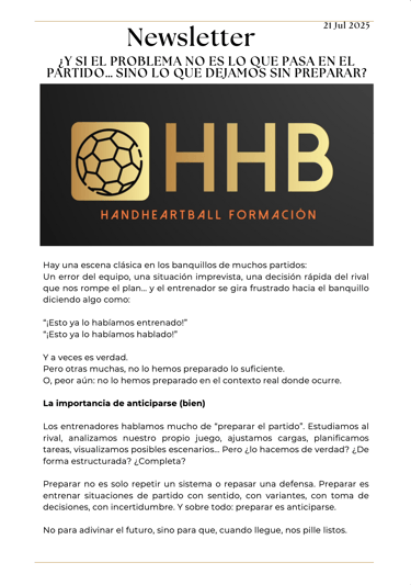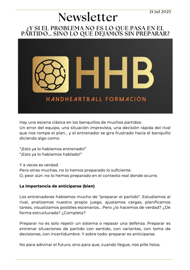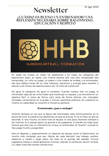 Newsletter HHB Handheartball formación